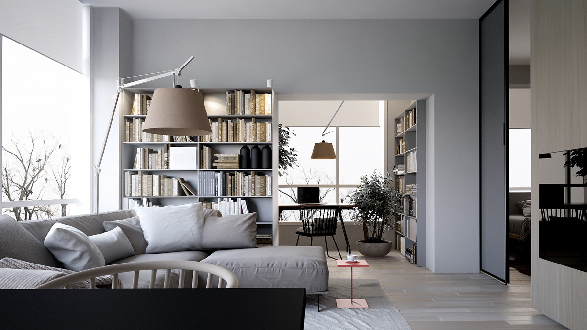 空间用的是高冷的灰色与白色,整个空间有点像梦幻中电影里的场景。