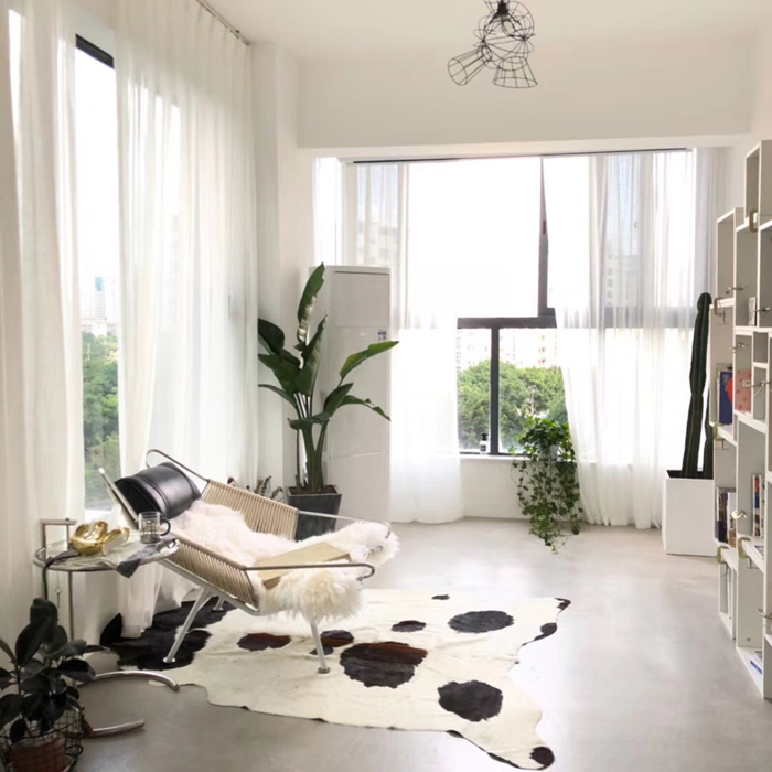 黑色靠枕白色羊毛毯的旗绳椅下铺着黑白相间的奶牛皮地毯,在大面积铺陈的白色系中性色调中呈现出一种简约纯粹的现代感。轻便牢固的不锈钢元素,在光线的加持下给看似柔和低调的空间带来一抹闪耀的光芒。生产休闲椅就要这种独特的构思,只为生活的需要,只为舒适温馨的生活,才能创造出不朽的佳作。