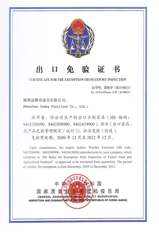 当前位置:首页 » 荣誉资质 » 出口免验证书