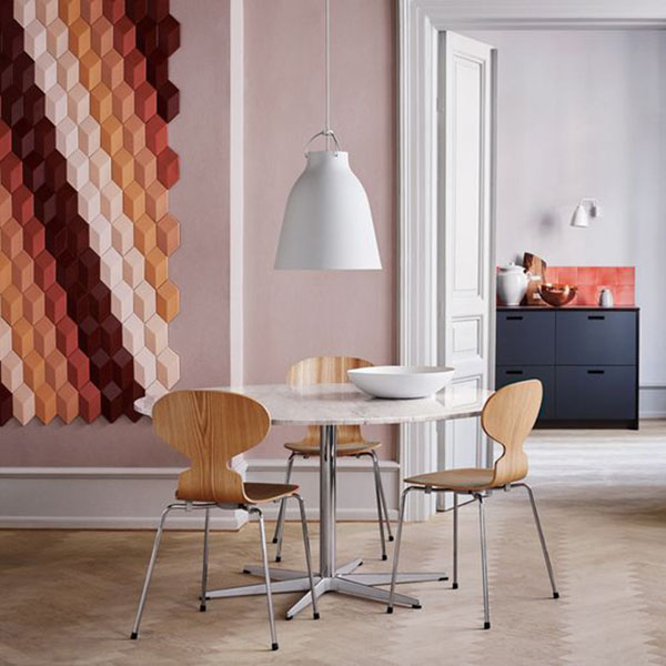 3、蚂蚁椅 因椅子头部酷似蚂蚁头而得名,最开始是三条腿,后来为了更稳定做成了四条腿。造型简单却又具有极强的舒适坐感,销量也是特好,尤其是餐馆老板的心头好。