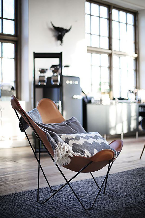 4、蝴蝶椅 一款结构简单、可以折叠、便于携带、形式现代、造型有趣的折叠椅。又被叫做BKF椅,BKF分别代表阿根廷的三位设计师Antonio Bonet、Juan Kurchan、Jorge Ferrari Hardoy。