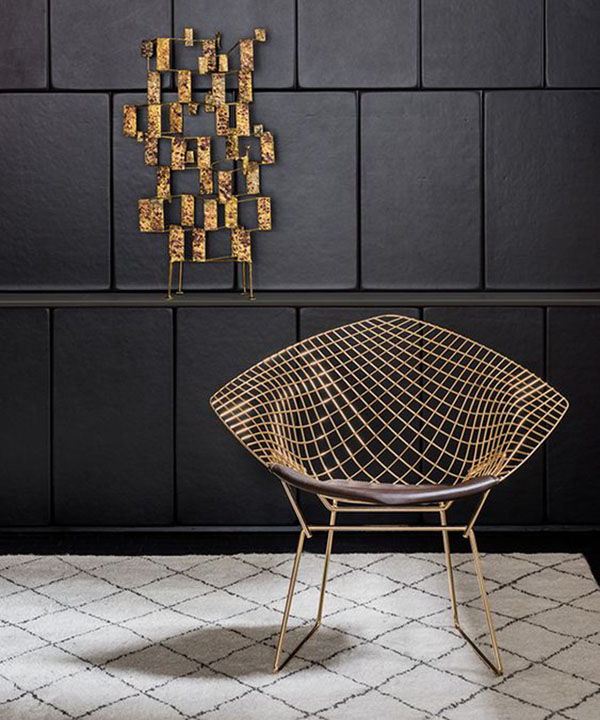 5、钻石椅 乍一看,这就是一张铁网兜,下面安了两个金属脚。但细看就会发现,钻石椅轻盈且充满雕塑感。