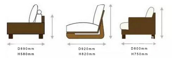 沙发坐垫的深度常见的有95cm和105cm,身高1.7米以下的人群选择95cm比较合适, 而1.7米以上的人群则选用105cm会更加舒服,可以缓解背部的紧张状态。如果平时工作压力很大的年轻人,可以选择超大进深的沙发,比如将进深加深到125厘米,你整个身体就可以完全松弛陷入沙发中。
