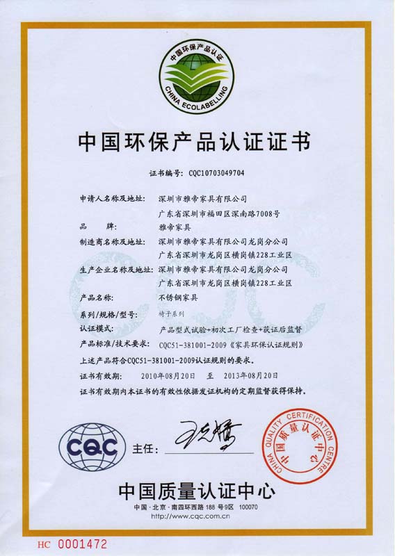 当前位置:首页 » 荣誉资质 » 中国环保产品证书