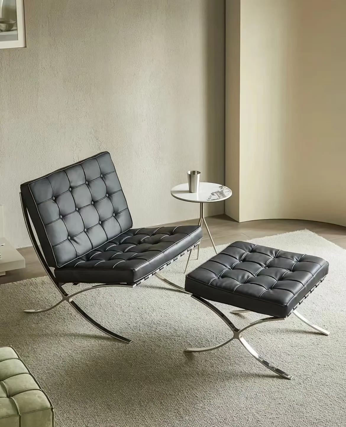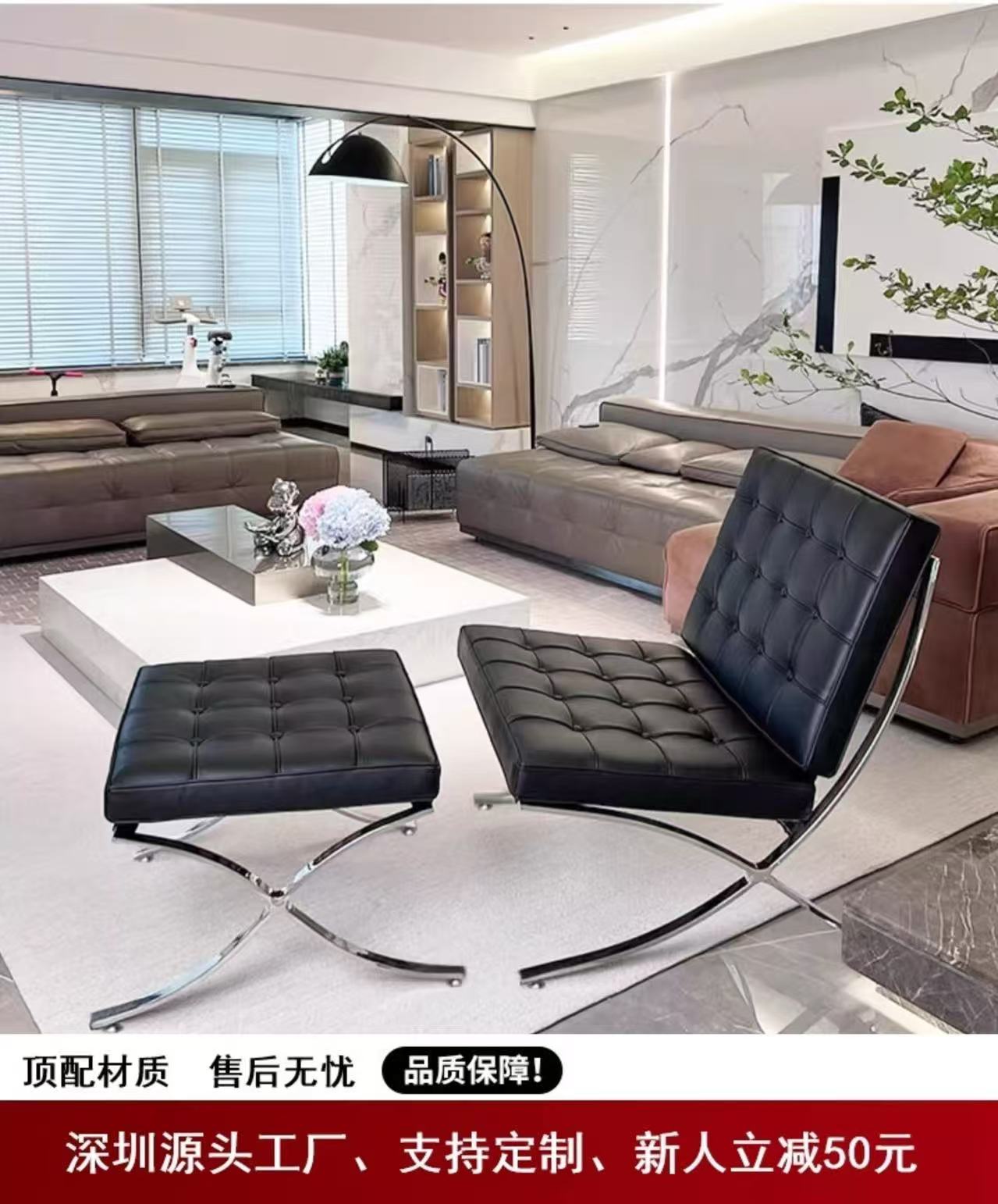这款巴塞罗那椅。最初作为接待西班牙皇室的御用家具,它以极简优雅造型与精湛工艺,迅速成为设