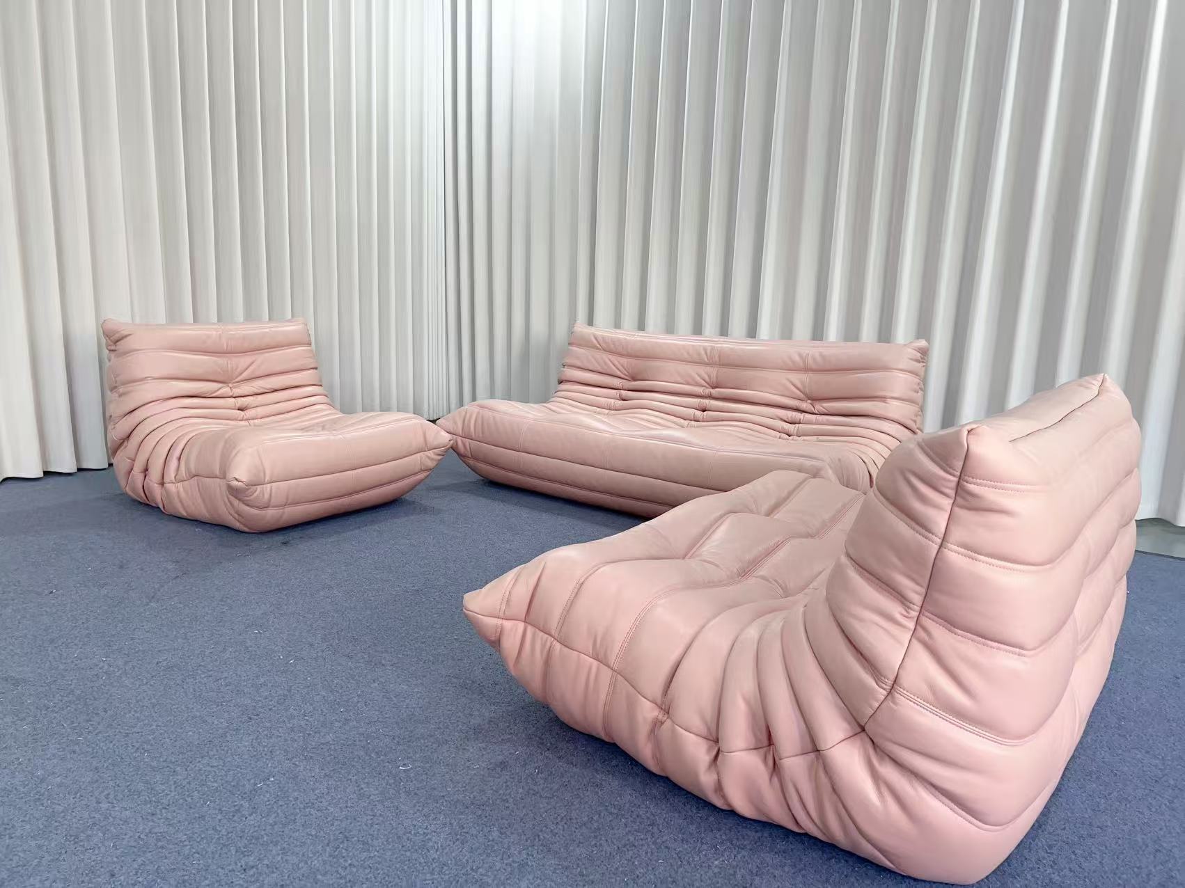 - 产品简介:这款毛毛虫沙发的造型堪称艺术典范,其蜿蜒流畅的曲线,灵感源自灵动的毛毛虫,不仅极具视觉冲击力,更完美贴合人体曲线。精选优质小黄牛皮,经匠人全手工缝制,每一针每一线都彰显品质,皮革细腻柔软,纹理自然,带来如云朵般的亲肤触感。搭配坚固的不锈钢架,在确保稳固耐用的同时,赋予沙发现代时尚气息,将包豪斯家具的简约与实用发挥得淋漓尽致。