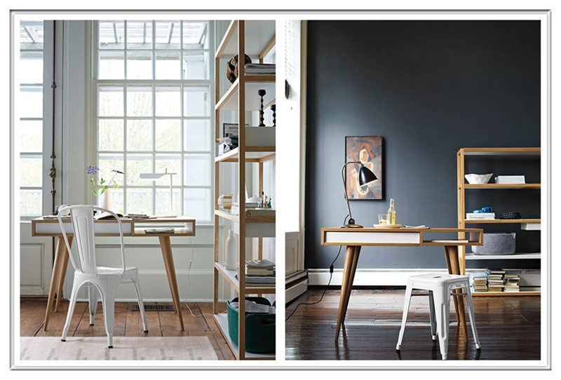 CELINE DESK,矩形的桌体,倾斜的圆柱形实木脚;成黄金分割比例的细长的抽屉和开放式的隔间。苗条、时尚,在小居室一样可以用(产品整体尺寸是110*55*75cm.)。可以作为书桌使用,也可以用作梳妆台。 原木色的CELINE DESK 给人以清新感,搭配简洁的书椅,宁静自然。 胡桃色的CELINE DESK 多了一份沉稳,可以和更多的室内装饰空间相搭配。