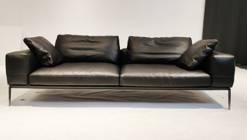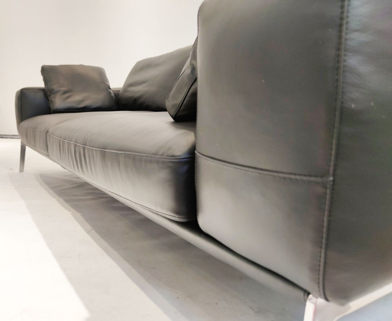 - 产品简介:这是一款非常经典的真皮沙发,优雅的设计,采用304不锈钢抛光脚架, 软包采用高弹海绵,弹性极好,坐上去非常的舒服,也可以躺在沙发上面睡觉。适合客厅、会所等场所。