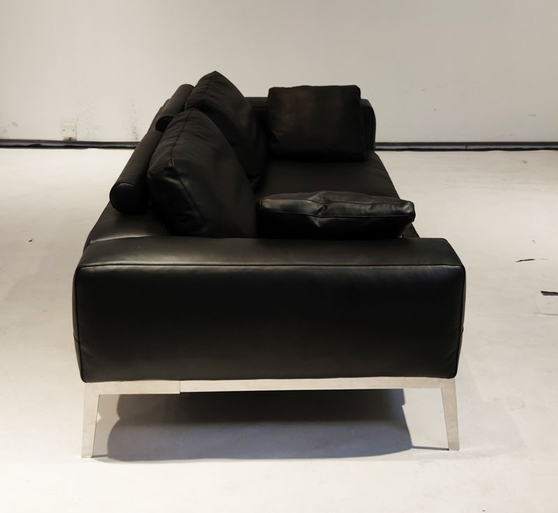 产品描述:这是一款非常经典的真皮沙发,优雅的设计,采用304不锈钢抛光脚架,软包采用高弹海绵,弹性极好,坐上去非常的舒服,也可以躺